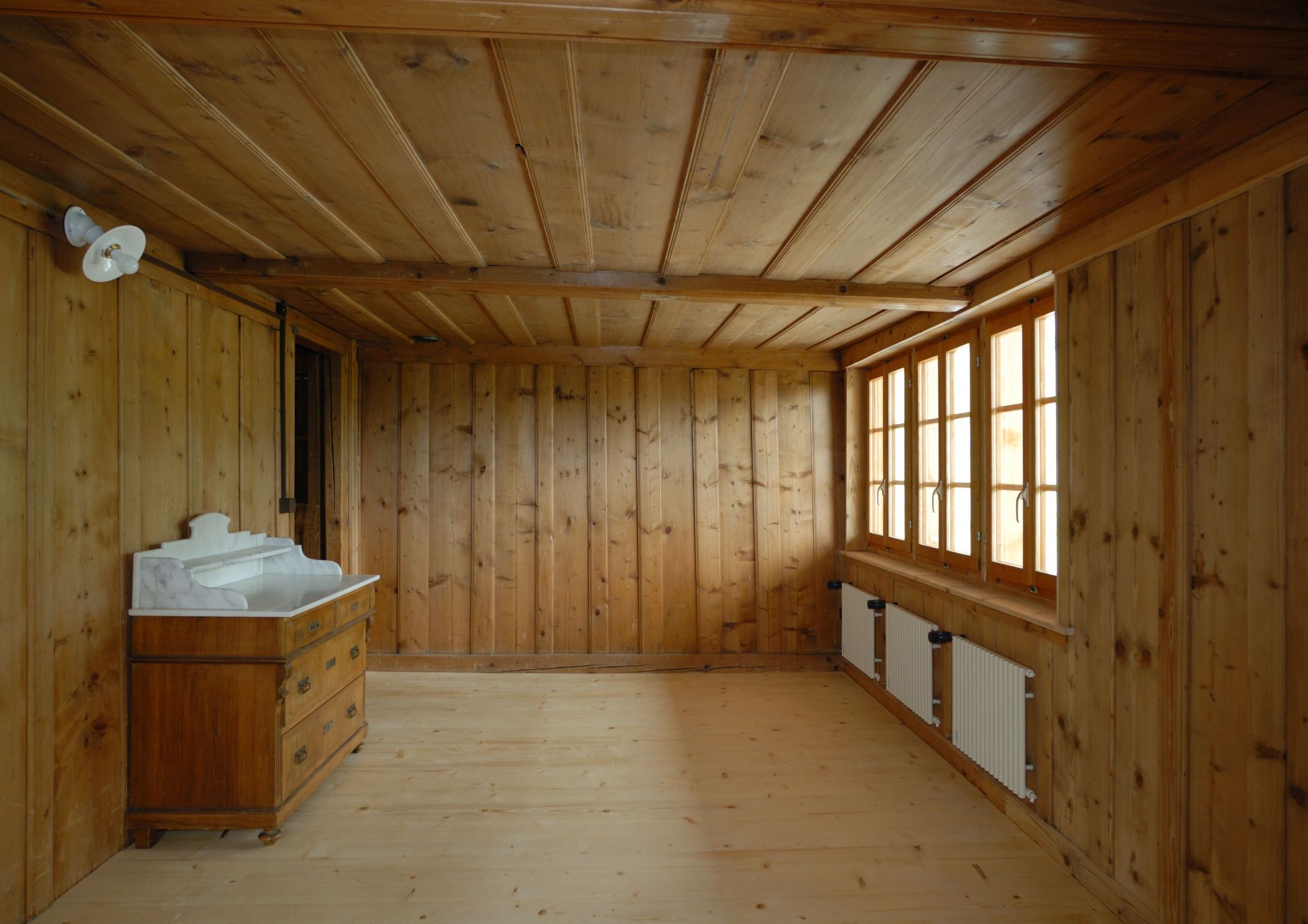 Isolations naturelles et construction en bois; chauffage à granules de bois et capteurs solaires.