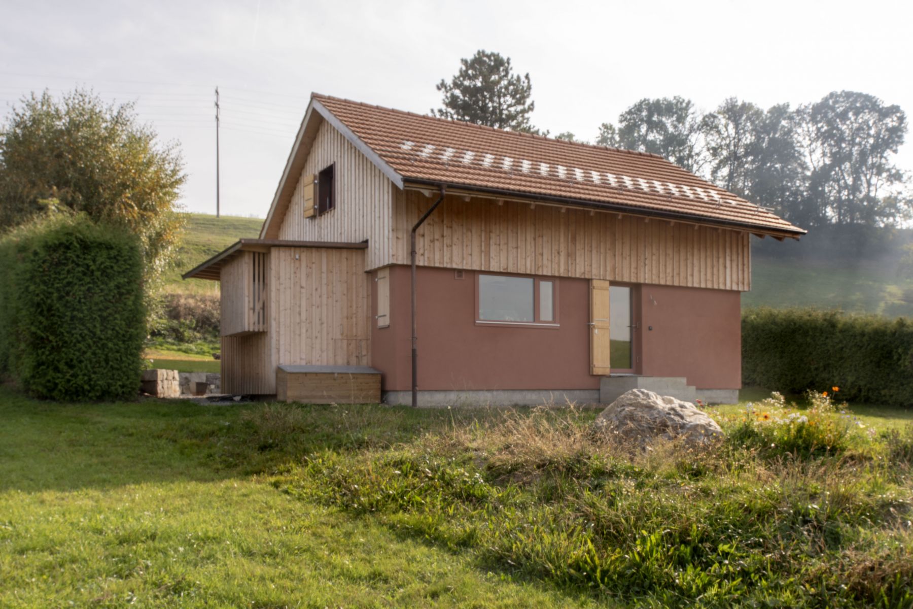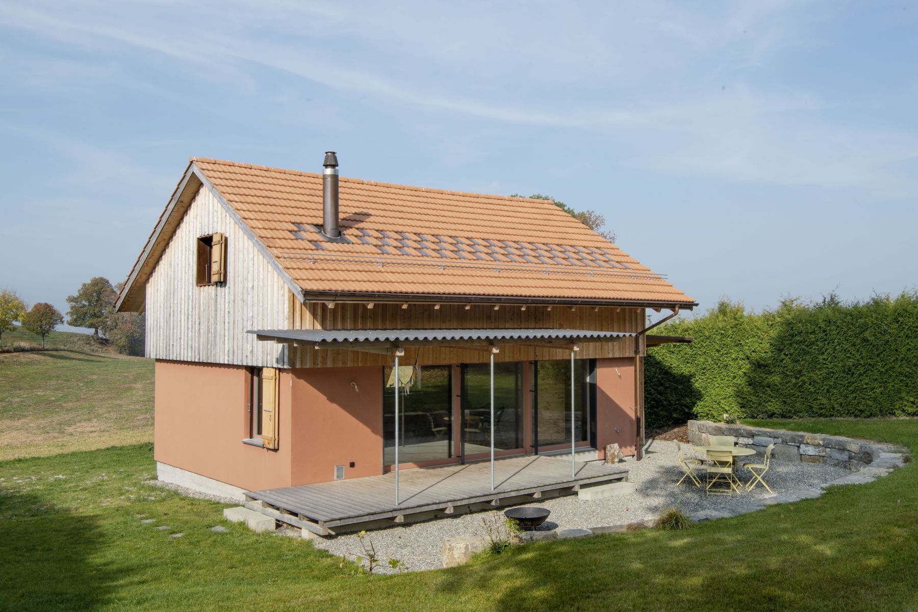Aménagement d'une résidence secondaire en zone agricole avec le confort d'aujourd'hui.